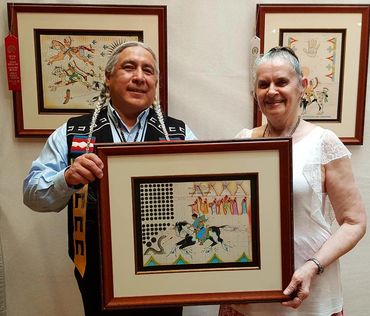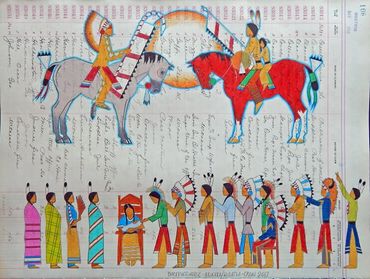 Ledger Art Exhibit in the Gallery featuring artists Brent Learned and George Levi. Black Pinto Horse work will be featured in the Brick home...